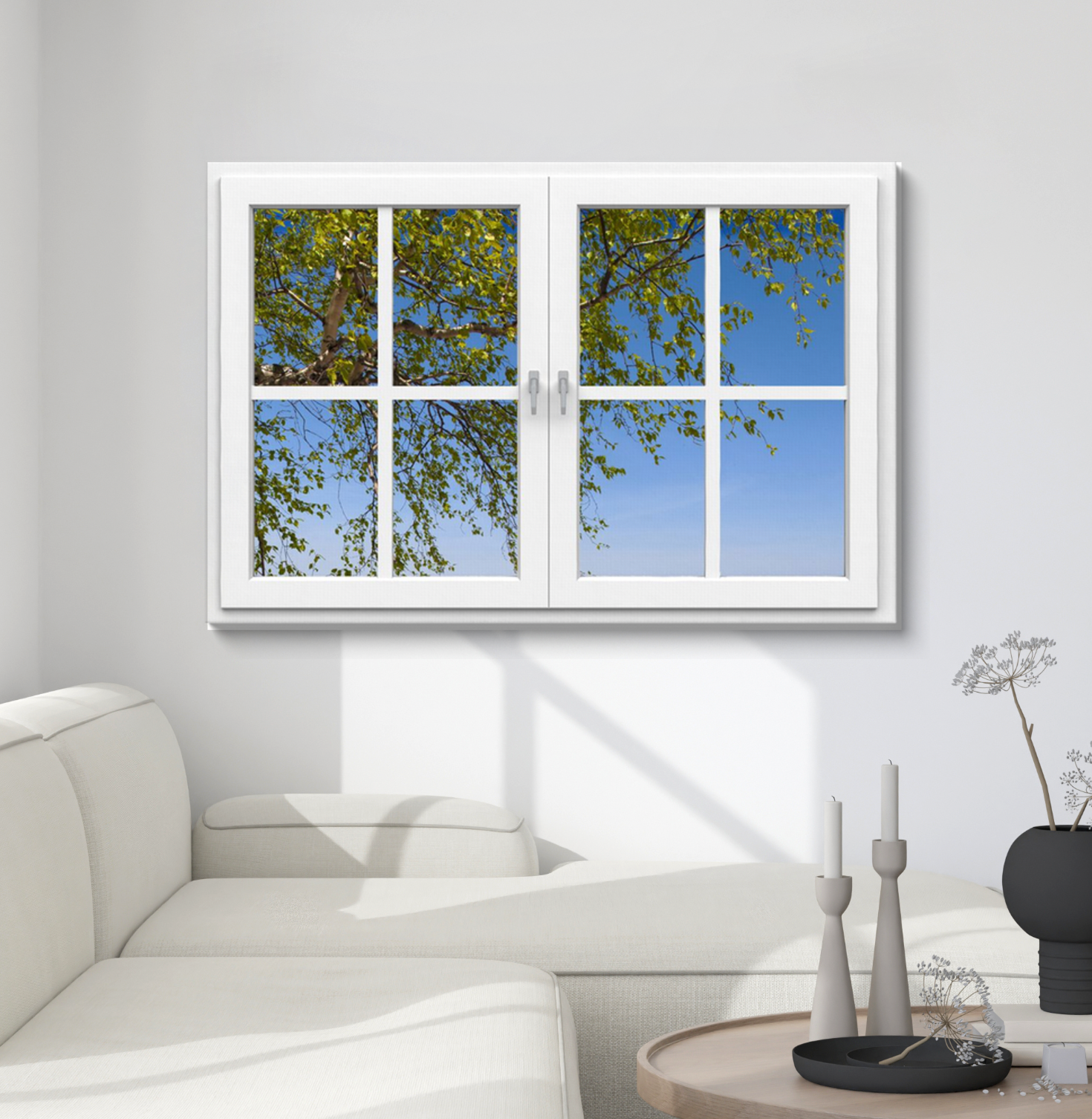 Canvas Wrap - Window Frame View with Tree Branch and Sky