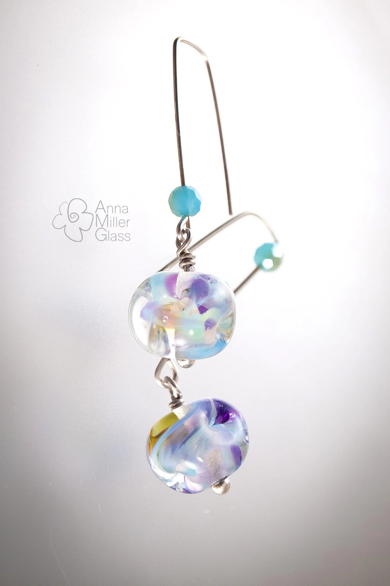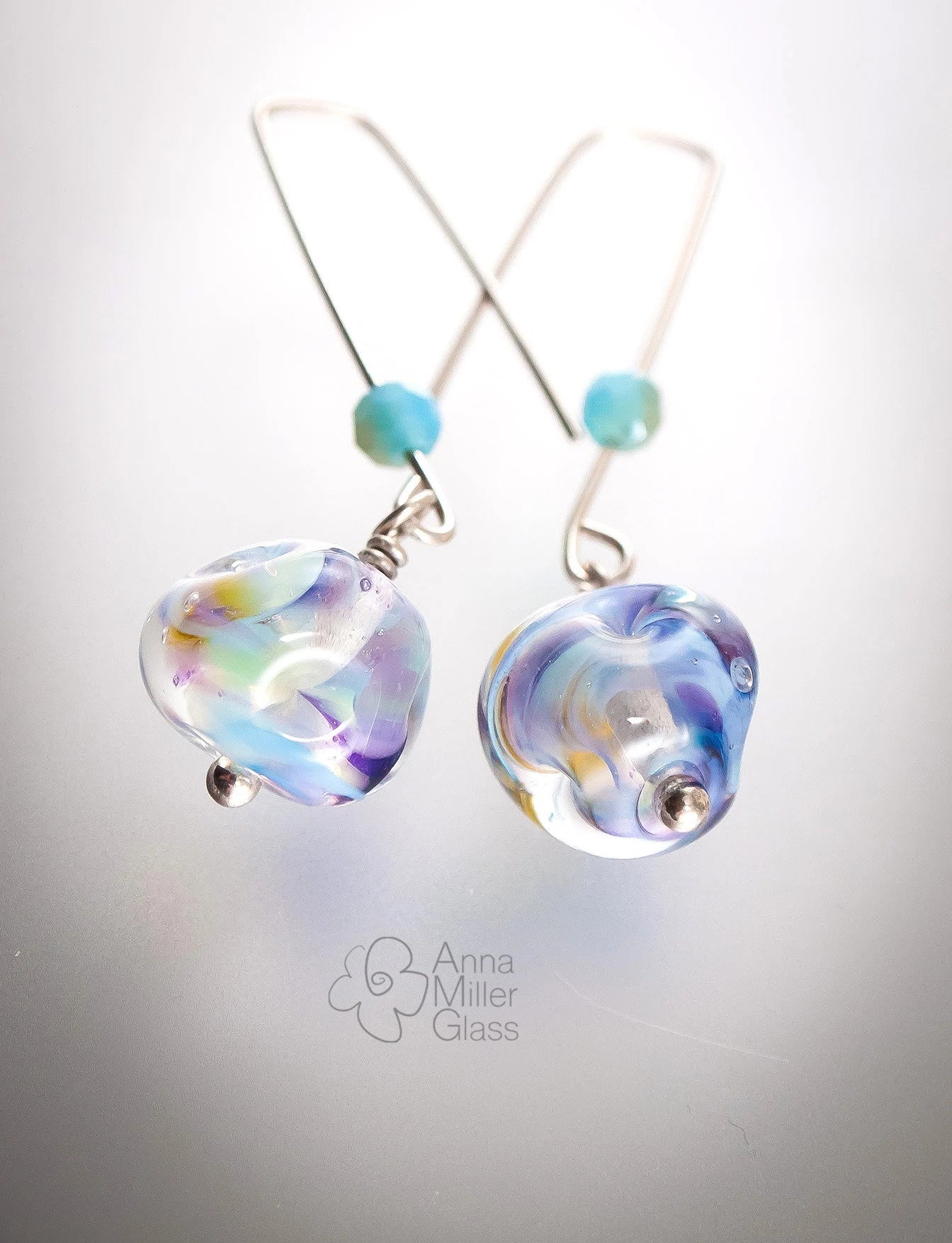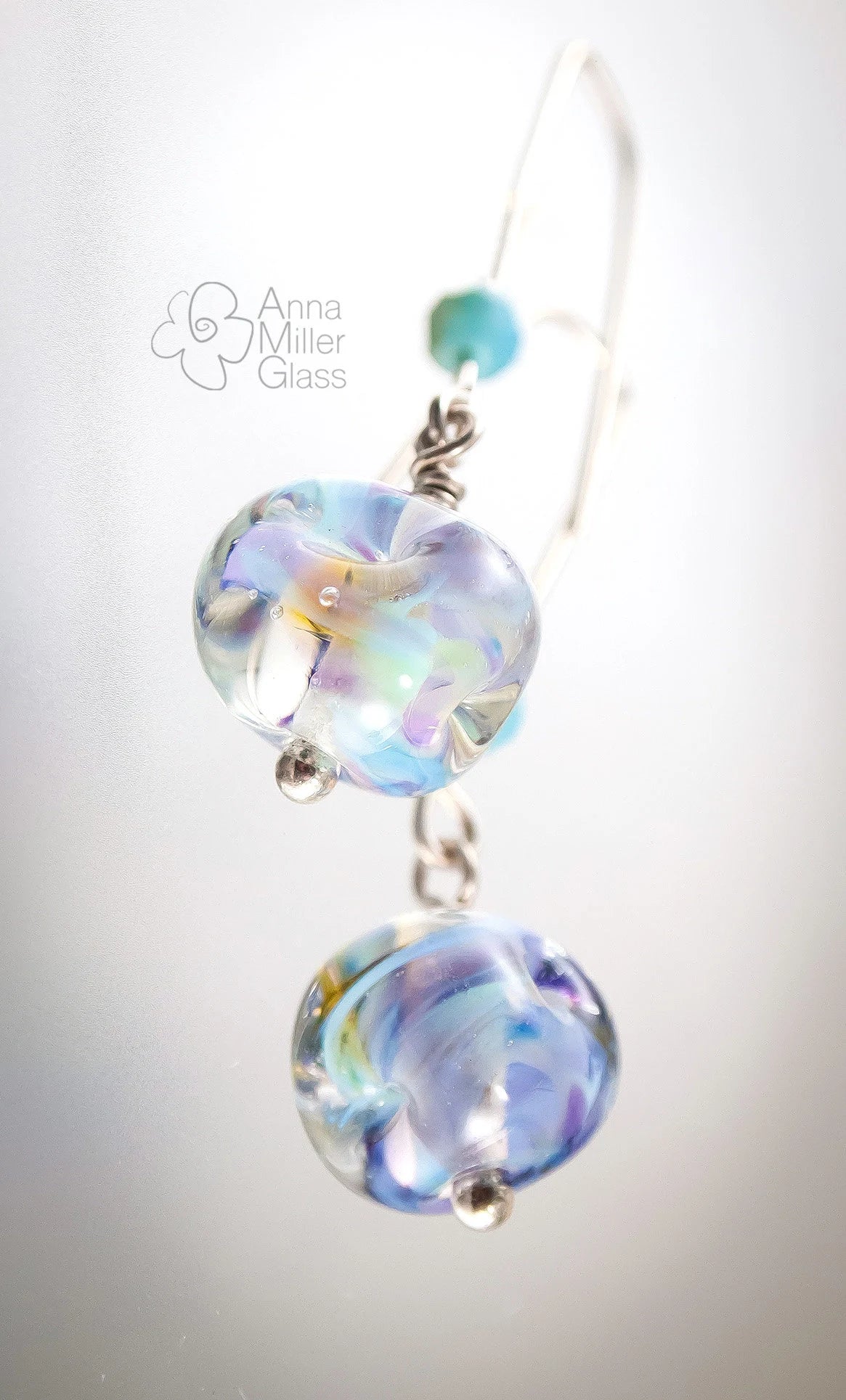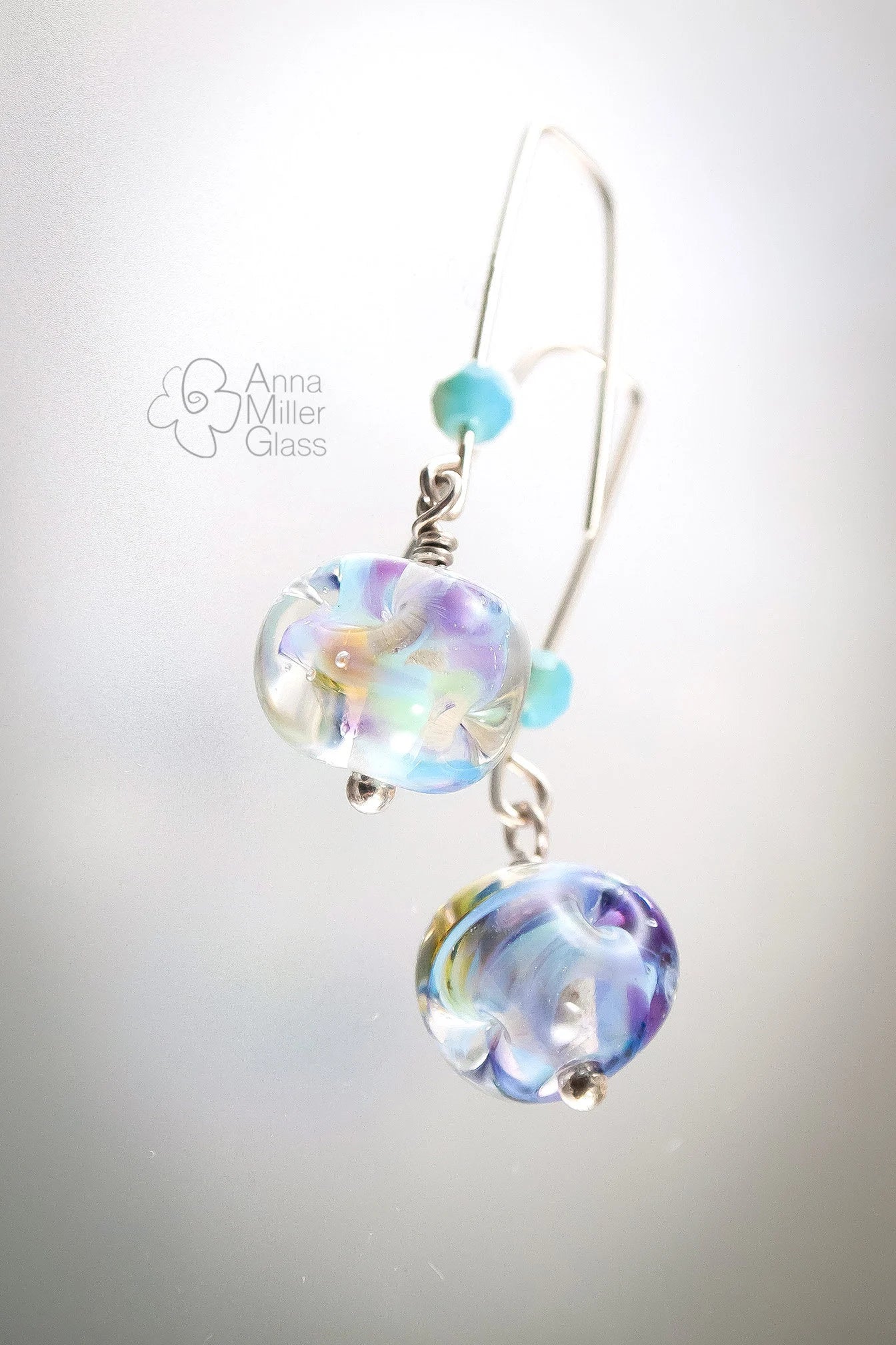 Lampwork Glass and Sterling Silver Earrings- Waterworld