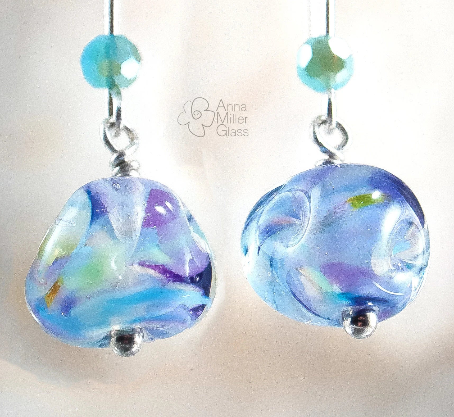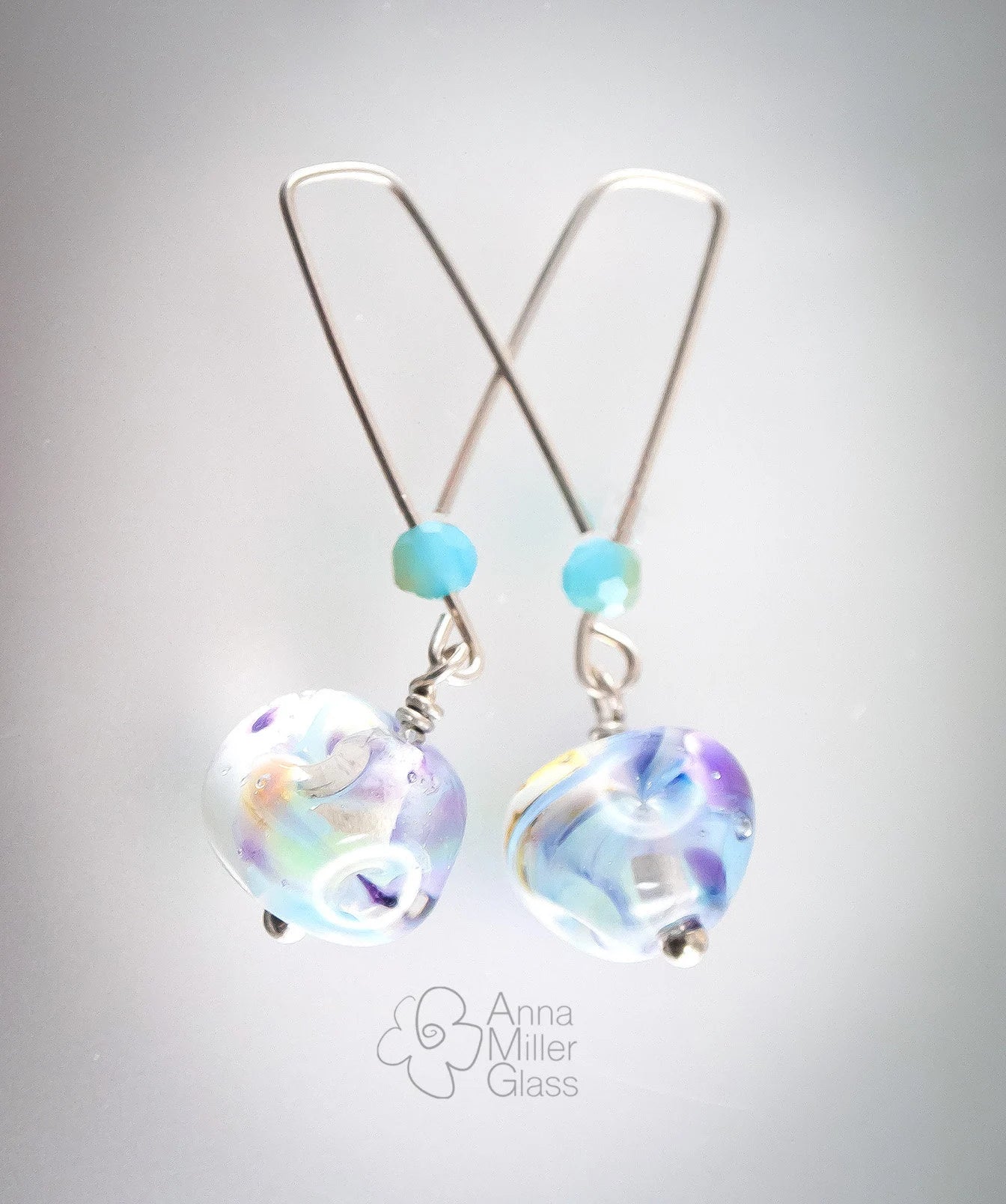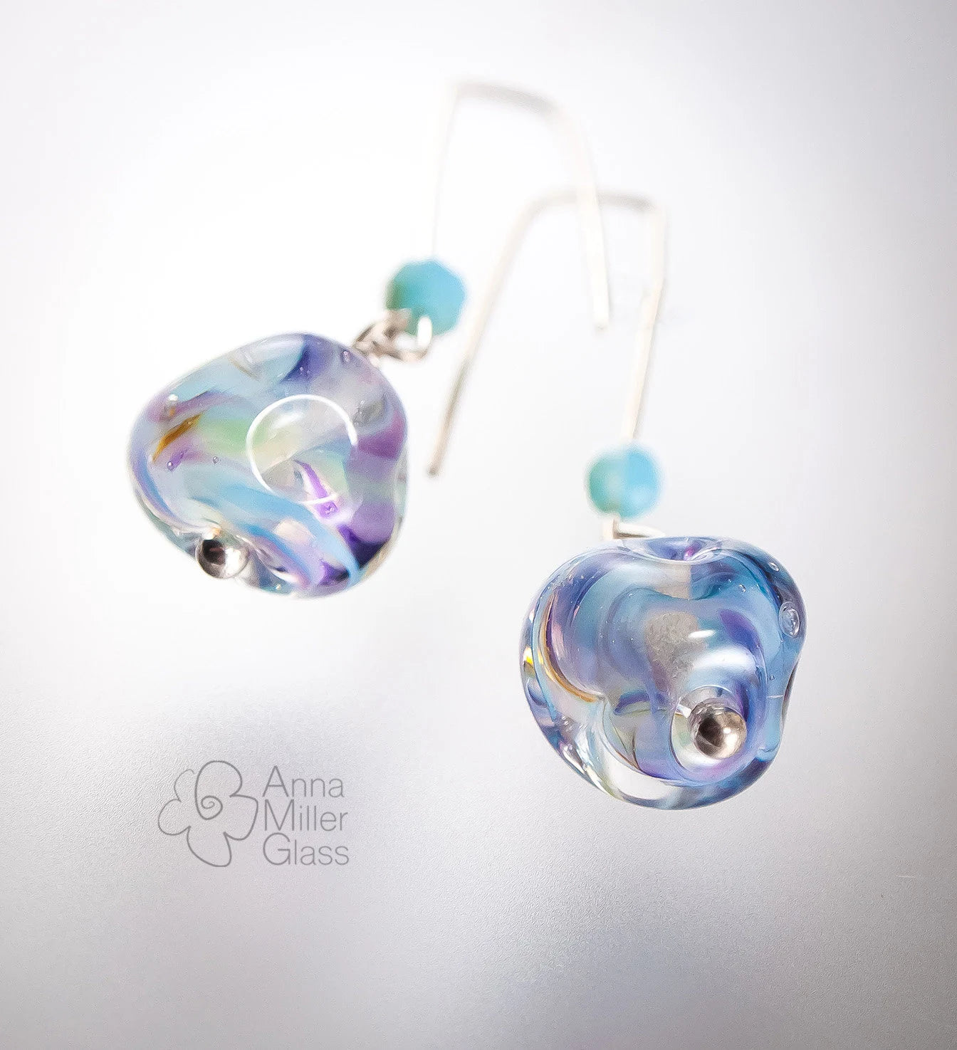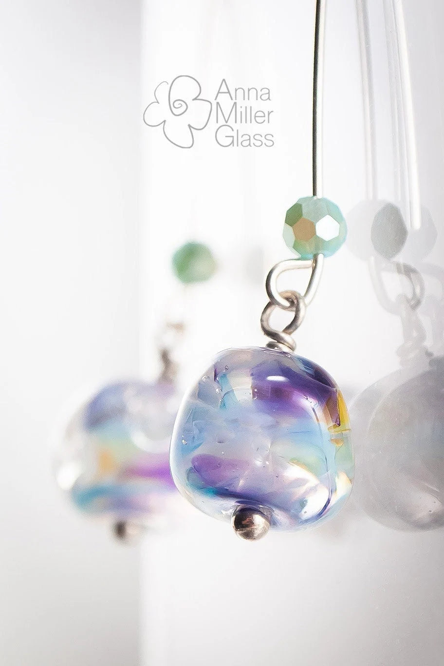 Lampwork Glass and Sterling Silver Earrings- Waterworld