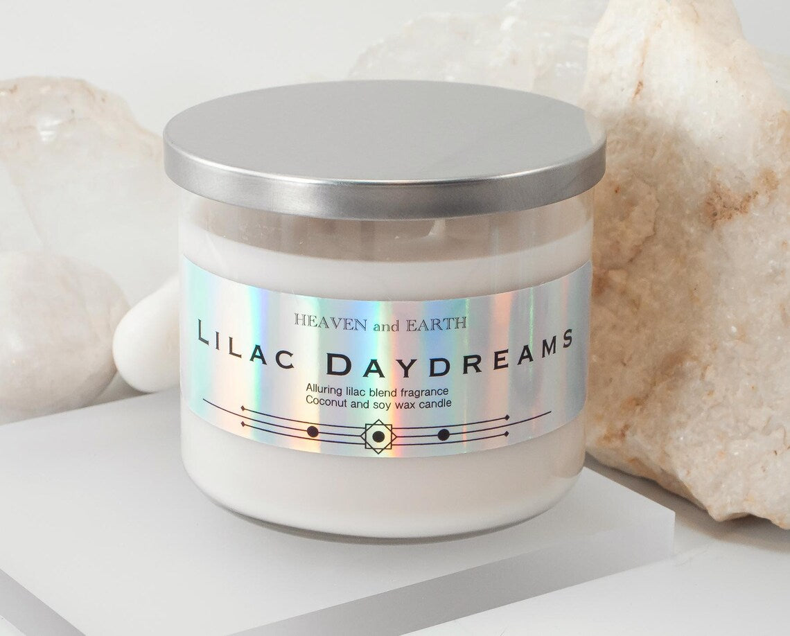 Create a luxurious ambiance of fresh garden full of lilac scent with Lilac Daydream, an exceptional fragrance from Heaven and Earth Candles. Crafted in the USA with premium food-grade soy and creamy coconut wax, Heaven and Earth candles are a testament to quality and elegance. The wax blend, made with USA-grown soybeans, delivers a clean, even burn with an enhanced scent throw—perfect for filling your space with warmth and sophistication.