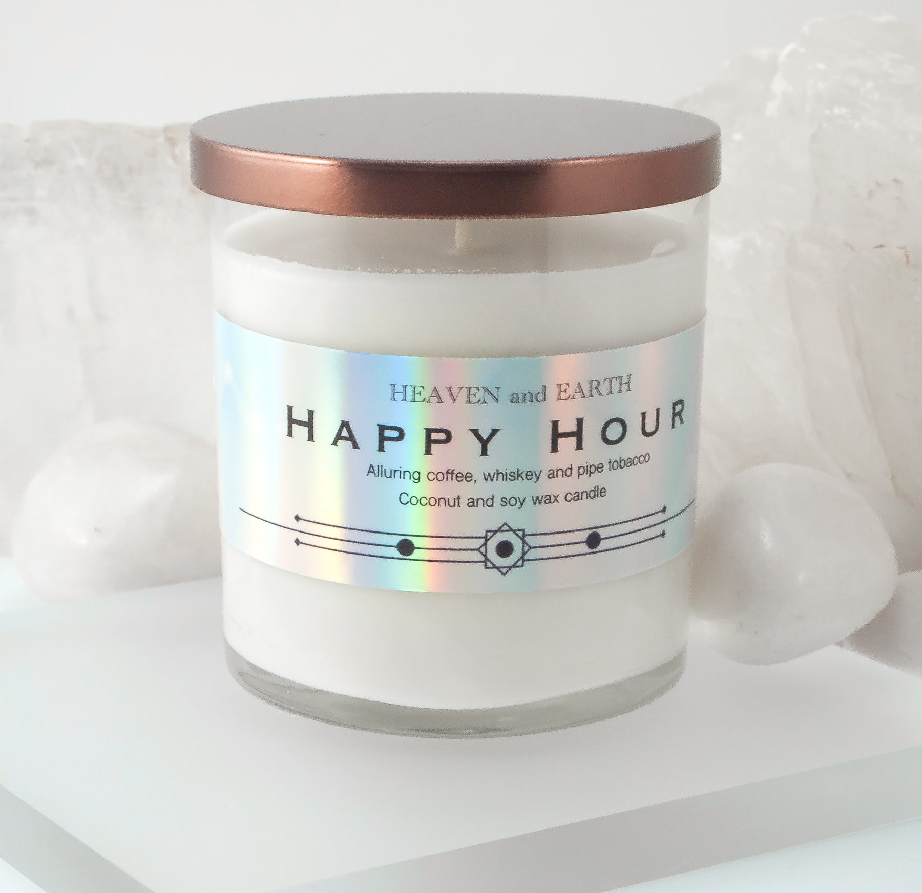 Indulge in the charm of that perfect time of day with Happy Hour, a relaxing and indulgent fragrance from Heaven and Earth Candles. Crafted in the USA with a premium blend of food-grade soy and creamy coconut wax, my candles are a celebration of quality and elegance. Made with USA-grown soybeans, the wax blend ensures a clean, even burn and an enhanced scent throw, creating a warm and sophisticated atmosphere in your space.